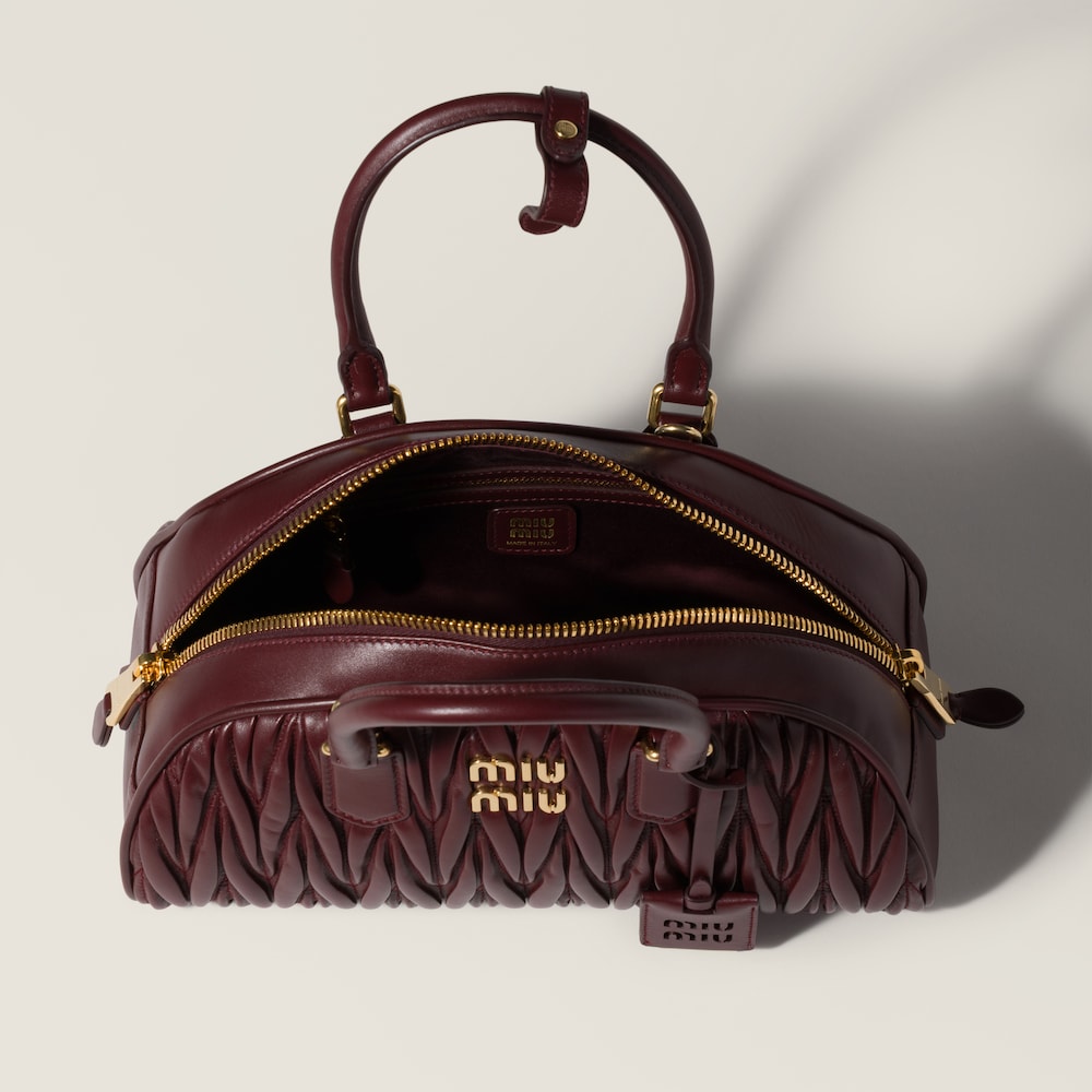 Inspired by the classic bowling bag silhouette, the Arcadie bag is reinterpreted in this soft matelassé nappa leather version with spacious volumes and rounded lines, an expression of refined functionality and references to the 2000s.
