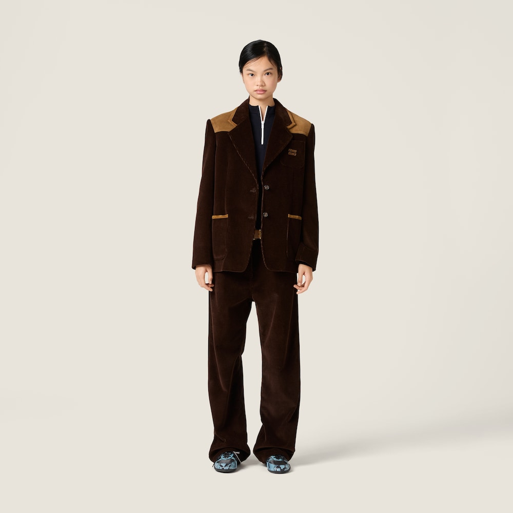 The shape and details of these corduroy pants recall a '90s aesthetic and menswear. The relaxed fit and crust leather logo in a contrasting color express an iconic and authentic style.
