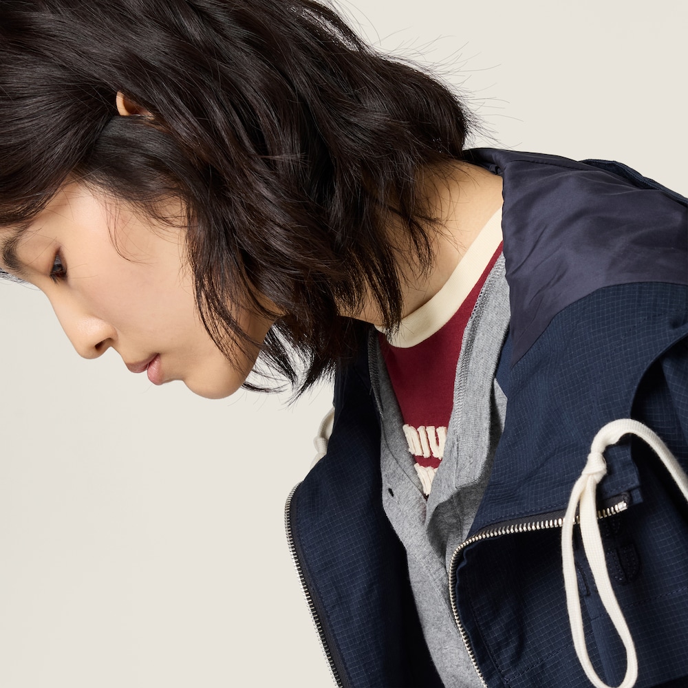 The relaxed, casual style of the tee is paired with the iconic attitude of the Miu Miu logo, defining a distinctive contrast in color that expresses its contemporary, casual identity.