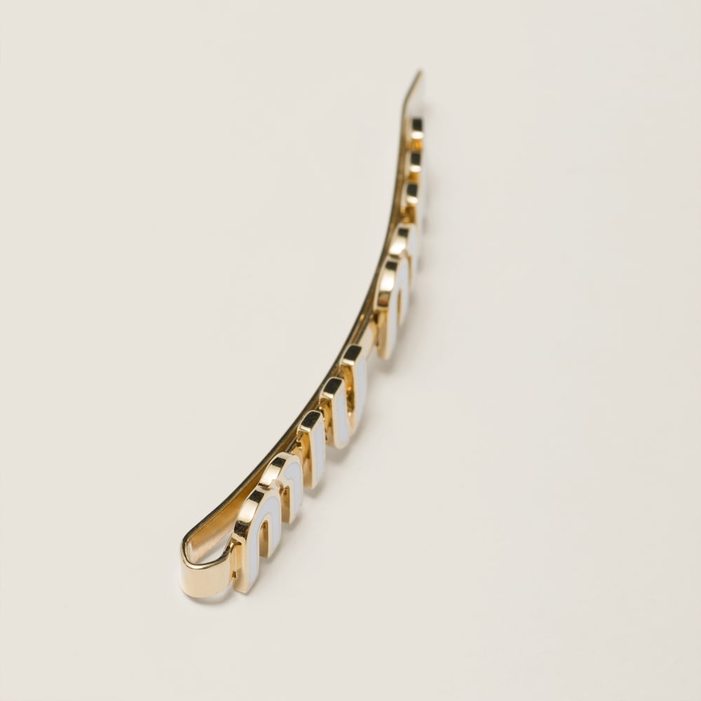 The visible Miu Miu logo gives this clip iconic and immediately recognizable style, becoming the emblem of a detail that makes all the difference.
