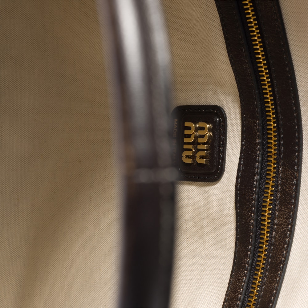 - Linen blend interior with double zipper pocket