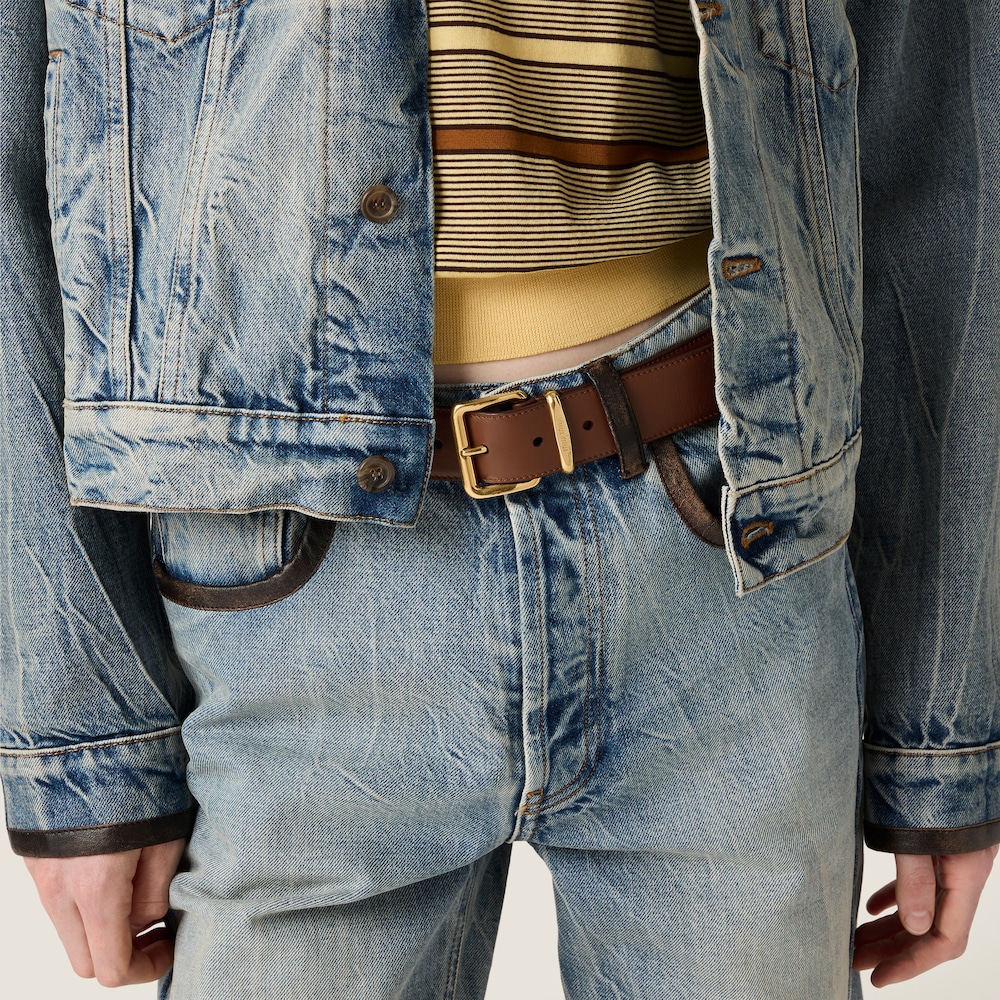 Elegant and minimalist in design, this leather belt is characterized by the Miu Miu logo that embellishes the belt loop.