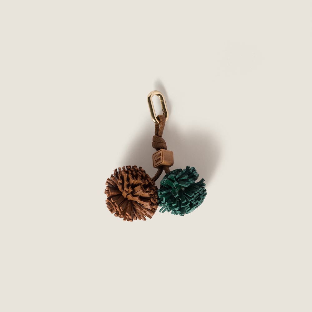 Miu Miu's bold, unique character comes to life in this soft leather micro trick with wooden logo that enriches the silhouette of sneakers and bags, creating new style combinations.