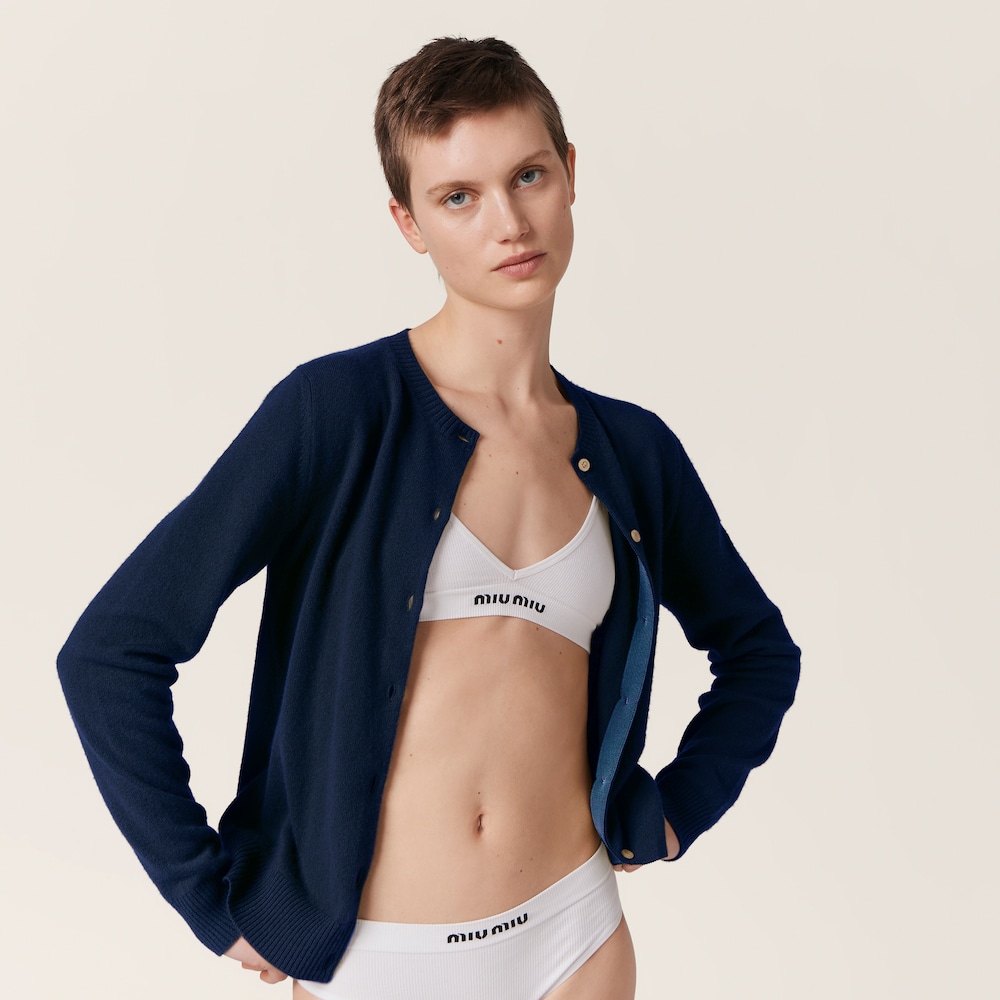 The Miu Miu logo stands out on the elasticized band of these panties thanks to the color contrast and its iconic character. Minimalist lines and simple stitching are combined to define the versatile garment.