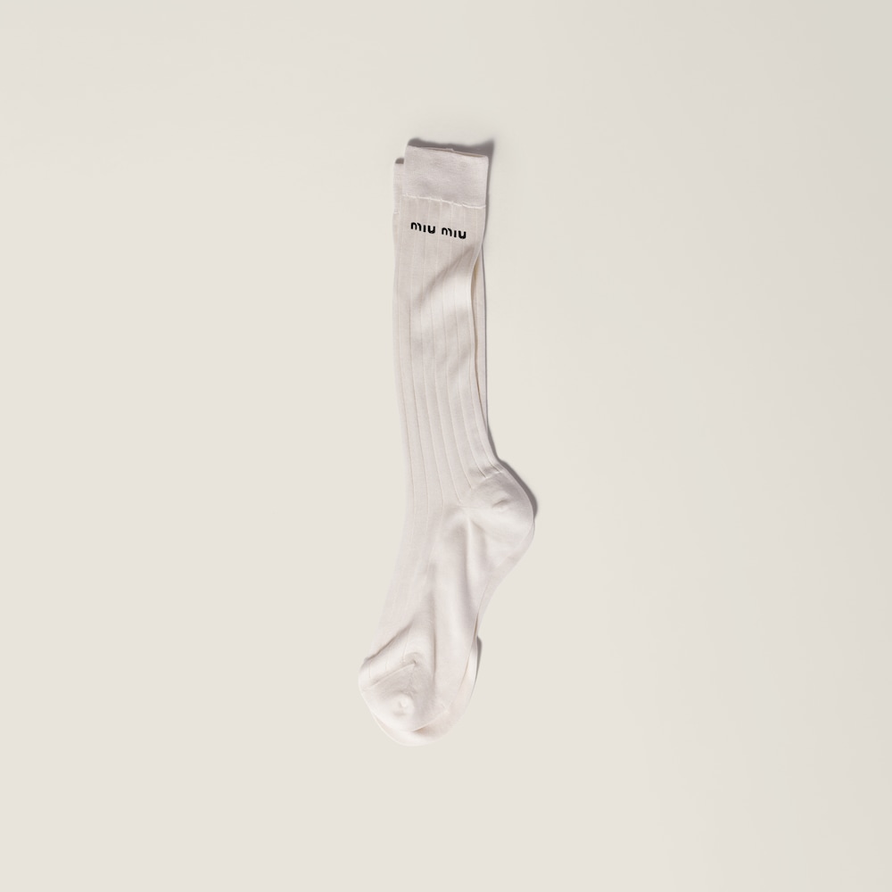 The embroidered Miu Miu logo adds an iconic touch to these silk socks with a smooth, compact feel.