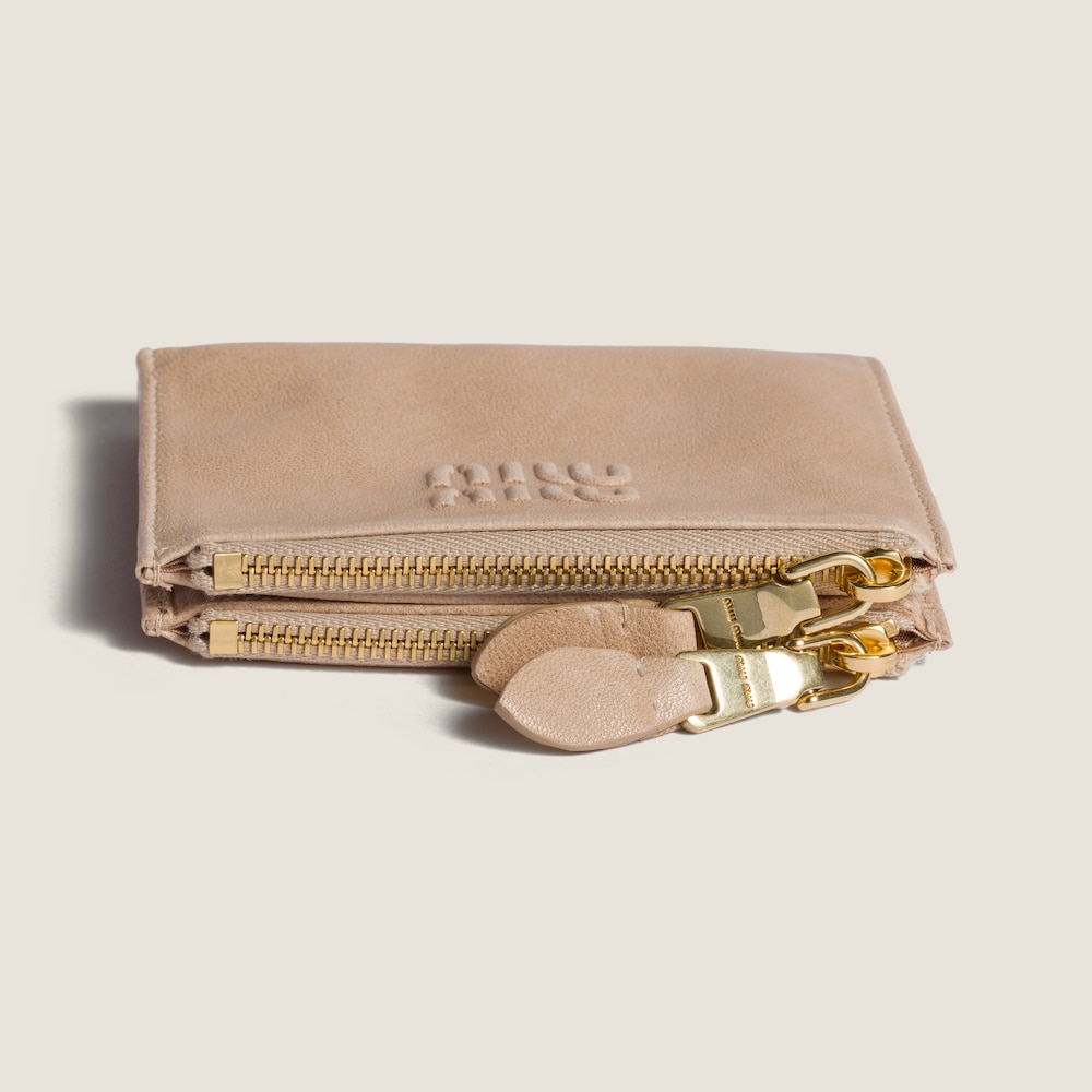 The quality of leather and the iconic touch of Miu Miu logo enrich the sleek lines of this new small leather wallet. Several internal compartments complete the design with functional details.