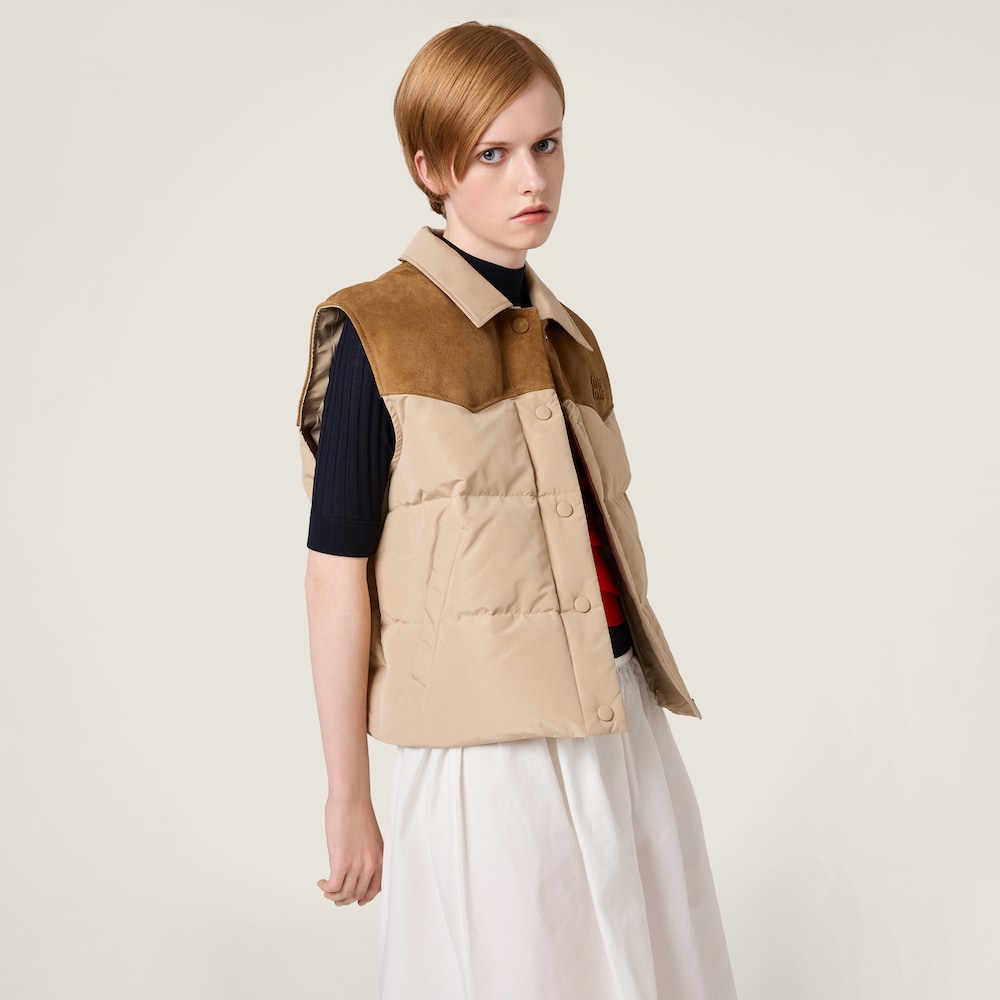 • Miu Miu Technical pongé and leather down vest Cord