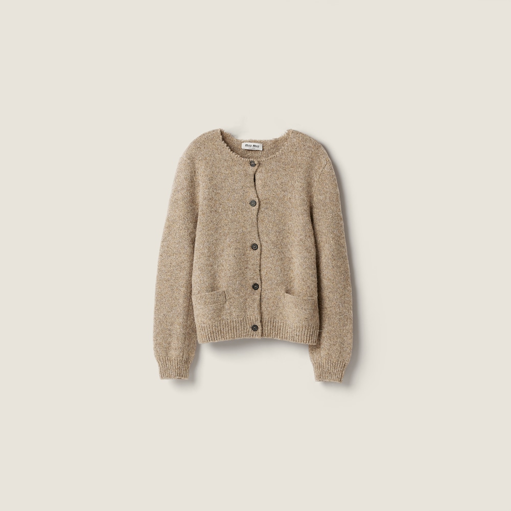Miu Miu Wool and fleece cardigan with zipper Navy